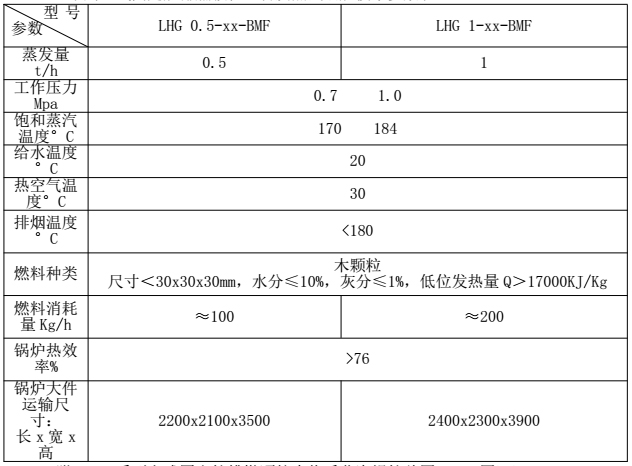LHG系列立式固定炉排燃颗粒生物质蒸汽锅炉技术参数表